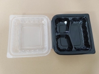 PP clamshell (bottom black PP tray connected with top clear PP lid)